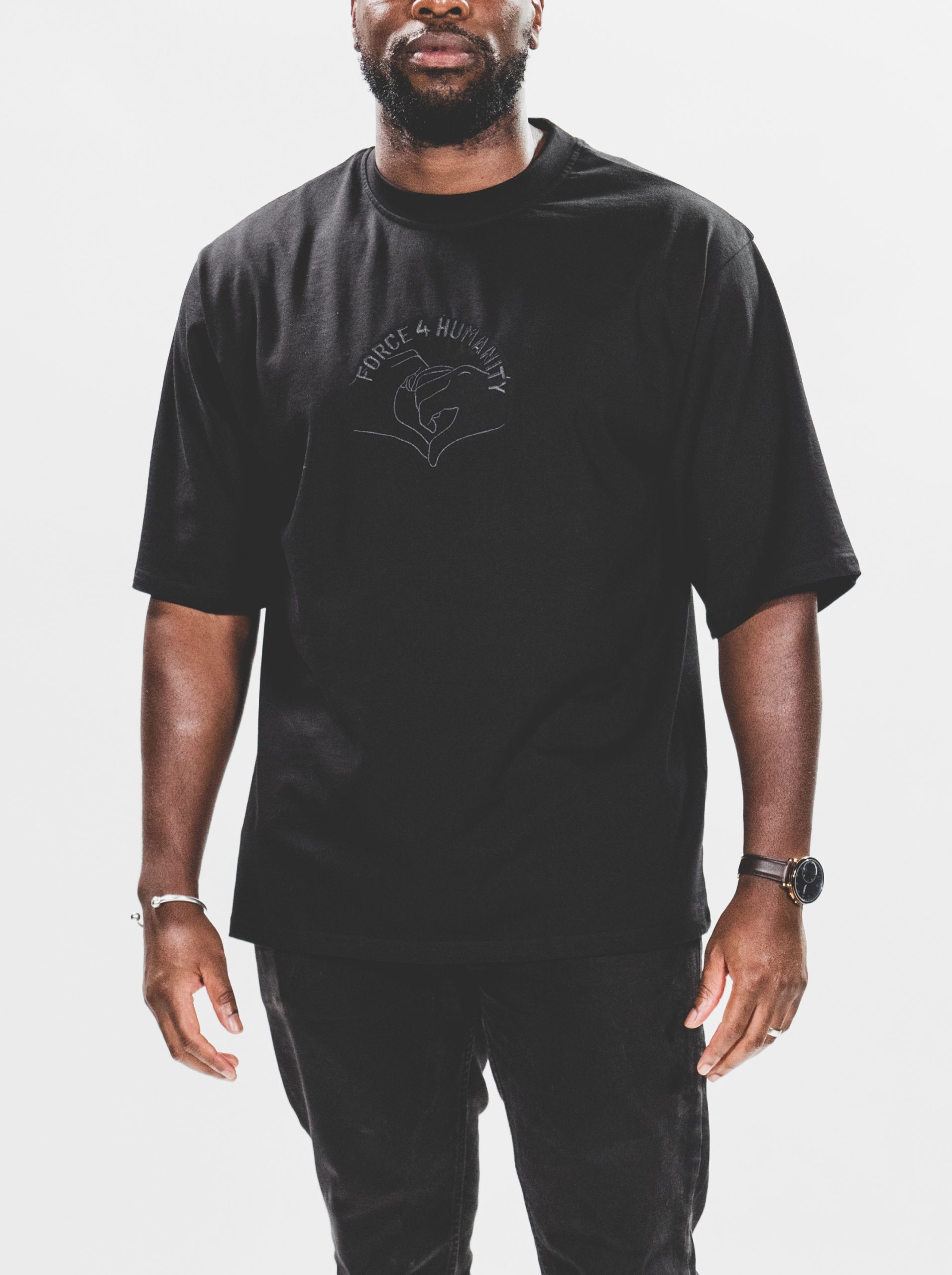 The Force 4 Humanity black oversized T-Shirt for men comes with a small yet mighty watermelon design embroidered across the front Wear this T-Shirt a statement of support and symbol of solidarity. 🍉